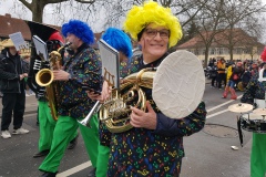 Los ging es am Samstag in Hattersheim – Premiere für die Wiesbadener Taunusmusikanten! Bunt herausgeputzt in ihrer Clownsuniform trafen sich rund 20 Aktive, um erstmals den großen Festumzug mitzugestalten. Nach kurzem Nieselregen war aber pünktlich zum Start des Trosses der Wettergott auf Seite der vielen am Straßenrand stehenden Menschen und Menschinnen! Lauthals gellte „Helau“ aus den Reihen des Musikzugs in Richtung Publikum und nicht minder stark auch wieder zurück! Rund 7Km legten die Musikerinnen und Musiker an diesem Tag zurück und hatten sich gegen 17 Uhr die Couch auch echt verdient!