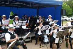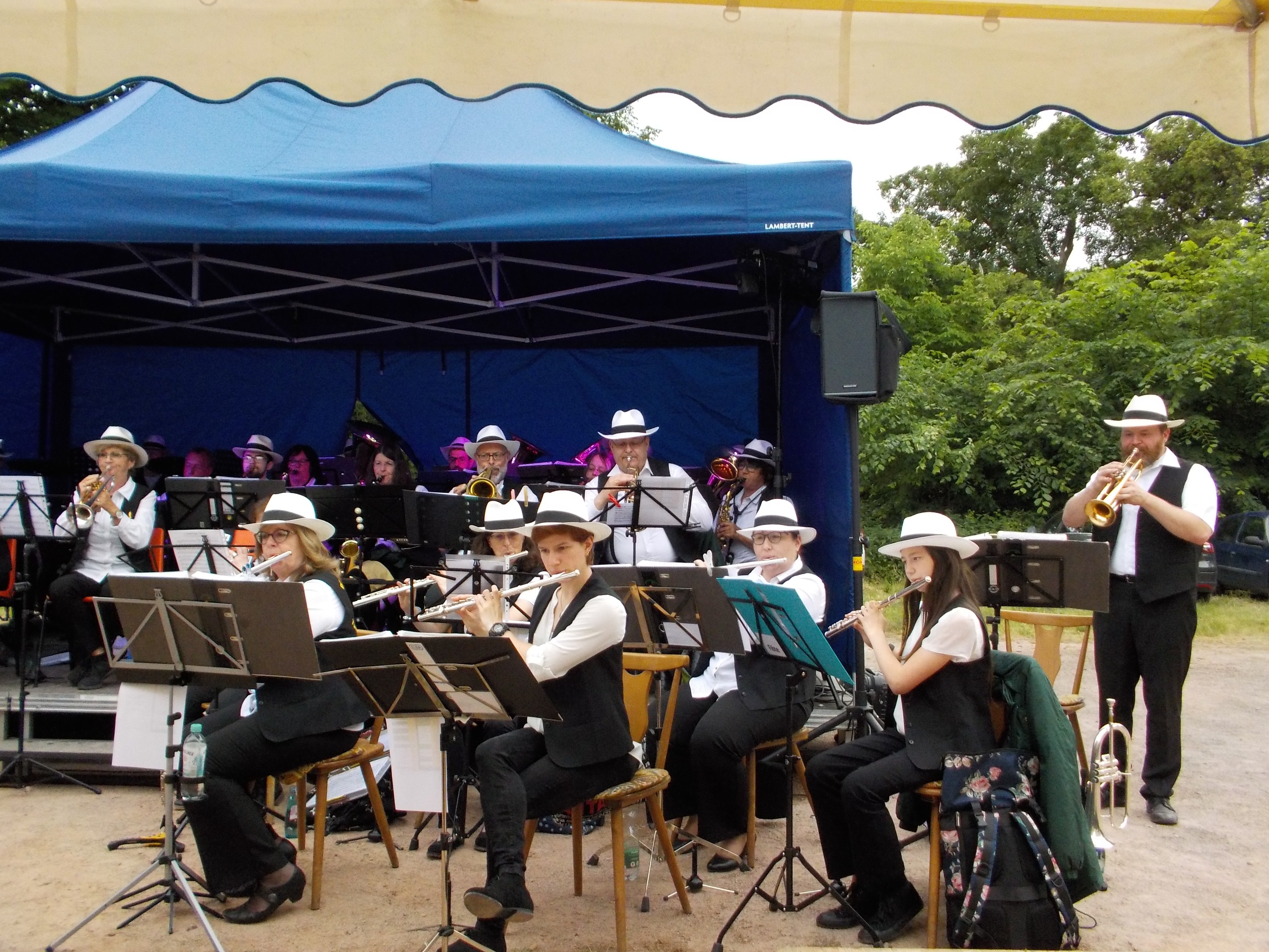 Wenn es passt, dann passt’s! Das Wetter zeigte sich nach den heftigen, deutschlandweiten Gewittern am vergangenen Sonntag von seiner besten Seite, die Taunusmusikanten haben sich nach rund 2 Jahren Auftrittspause in einem 5-monatigen Repertoire-Crashkurs gewissenhaft vorbereitet und die Musikerinnen und Musiker zeigten mit dem strahlendsten Lächeln immer wieder ihre Auftrittsfreude. Ein rundum gelungener Auftritt. Nicht zuletzt auch dank des unwahrscheinlich sympathischen Publikums, das jedes Lied begeistert beklatschte und auch bei den Mitmachaktionen auf höchstem Niveau mitmachte, mitsang und sogar das Tanzbein schwang.
