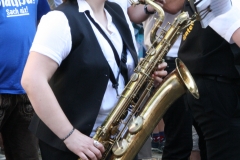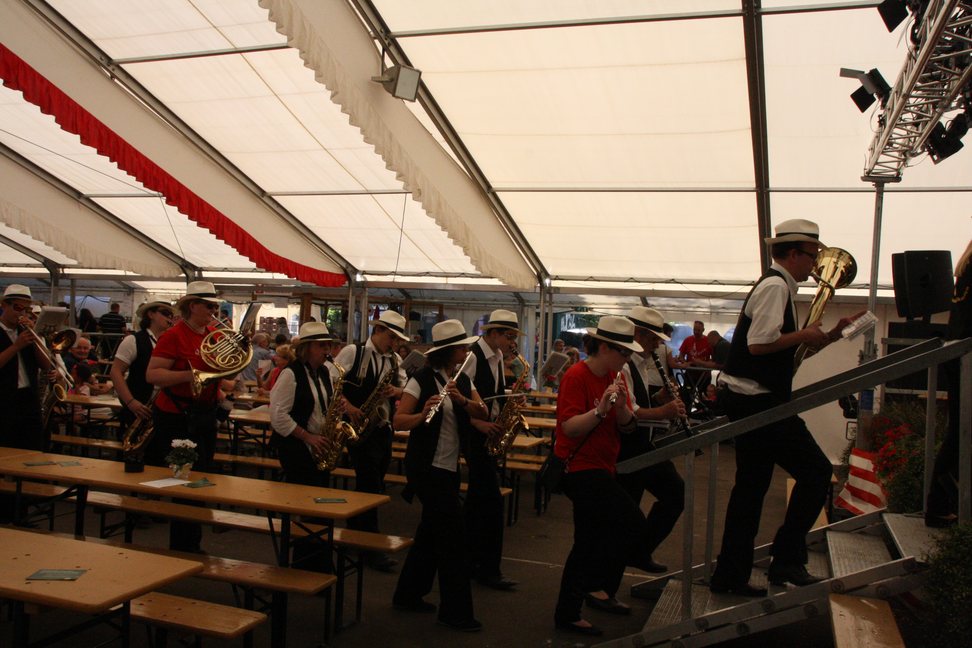 Auf der Wallauer Jubiläums-Kerb gestalteten wir zunächst gemeinsam mit den Gesangverein Wallau den Kerbe-Gottesdienst. Nach dem Mittagessen folgte der Kerbeumzug, den wir mit der Kerbegesellschaft anführten und zu diesem Zweck sogar mit extra „Garde Band“-T-Shirts ausgestattet wurden.
