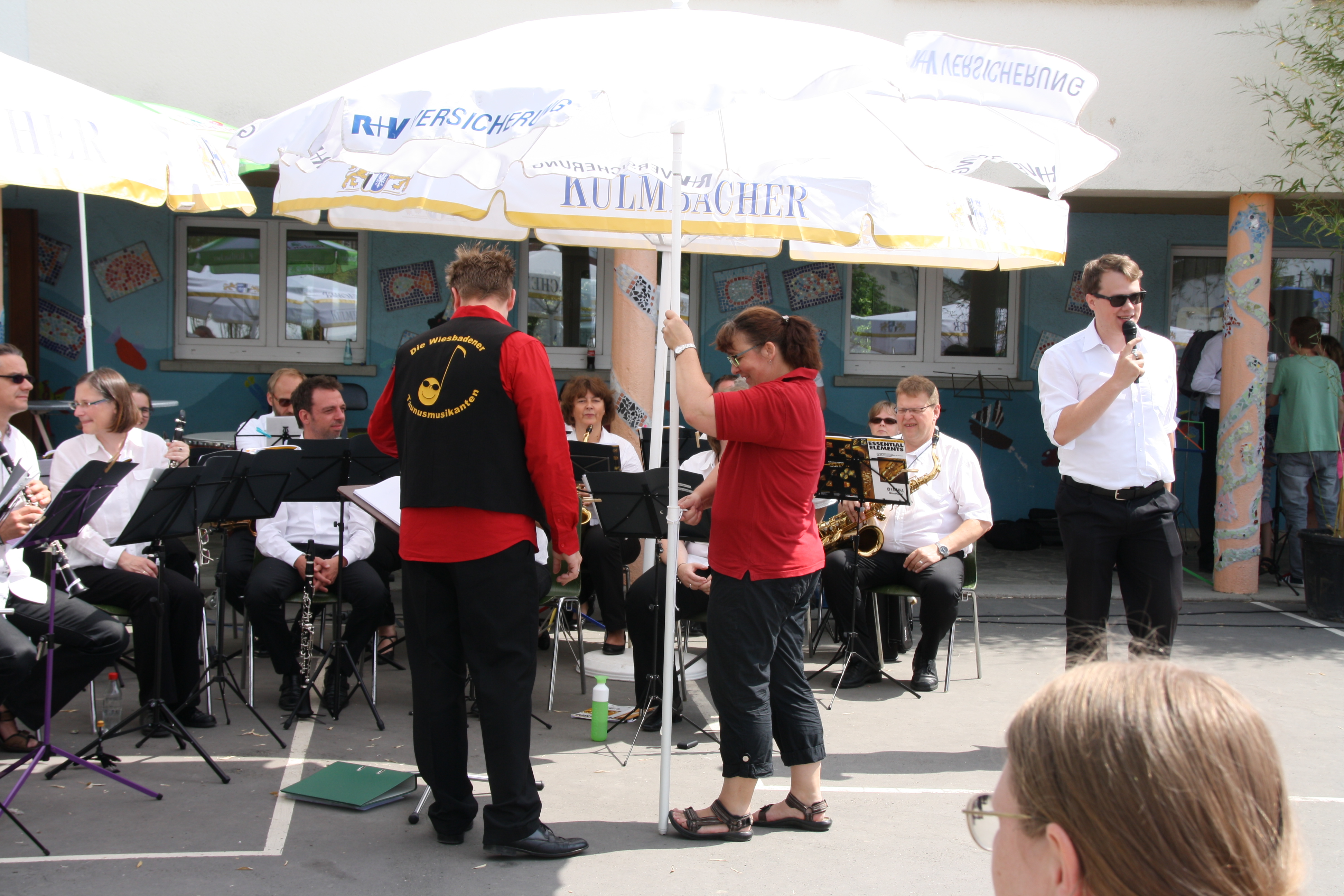 Am 12. Juli war es soweit: im Rahmen des musikalischen Sommer-Frühschoppens des Musikverein 1905 Ober-Wöllstadt e.V. absolvierte die Bläserklasse der Wiesbadener Taunusmusikanten den ersten öffentlichen Auftritt. Lange hatte man sich auf diesen Tag vorbereitet und Stücke eingeübt, um neben weiteren Erwachsenen-Bläserklassen aus Hessen ein 25-minütiges Programm zu absolvieren. Eine gesunde Mischung aus Vorfreude und Anspannung war zu spüren, als sich die Bläserklasse im Klassenraum der Grundschule Ober-Wöllstadt musikalisch und mental auf den großen Auftritt vorbereitete.