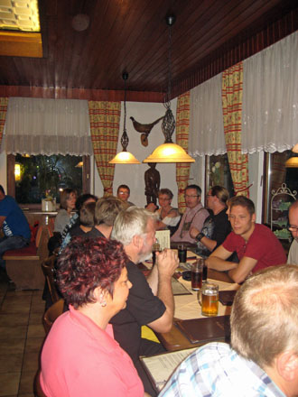 Nach einem Auftritt am Freitag Abend auf der Delkenheimer Kerb stand am Sonntagvormittag Kontrastprogramm auf dem Plan: Zwar wieder in Dirndl und Lederhose gekleidet, aber dafür in gänzlich anderem Ambiente bauten die Wiesbadener Taunusmusikanten ihre Instrumente in dem kleinen Örtchen Mittel-Gründau im Main-Kinzig-Kreis auf. Dort fand die „Metal-Gründau Tattoo Party 2012“ statt, die von dem Bleeding Roses Tattoo Studio veranstaltet wurde. Nach namhaften Heavy-Metal-Bands wie „Sodom“, „Dezperadoz“, „Sapiency“ und vielen anderen eroberten 30 Wiesbadener Taunusmusikanten um 10 Uhr zum Frühschoppen das Festzelt, in dem trotz der frühen Stunde bereits einige eingefleischte Heavy Metal-Fans auf das weitere Programm warteten. Auch hier überzeugte das breit gefächerte Repertoire des Blasorchesters. Zusätzlich bewiesen die Musiker, dass Heavy Metal und Blasmusik kein Widerspruch sein muss: „Enter Sandman“, „Born to be Wild“ und „Highway to hell“ verleiteten die Metal-Fans zu weiteren Headbanging-Einlagen.