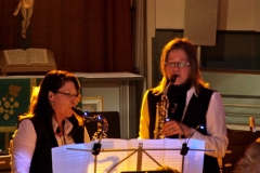 Dass die Wiesbadener Taunusmusikanten nicht nur mit ihren Instrumenten überzeugen können, bewiesen 13 unerschrockene Musiker, die sich zur „Sängerschaft Teutonia Deutsche Eiche WTM“ zusammengeschlossen hatten. Mit dem Gospel „Good News“ erreichte die Stimmung in der Kirche schon vor der Pause ihren ersten Höhepunkt.
